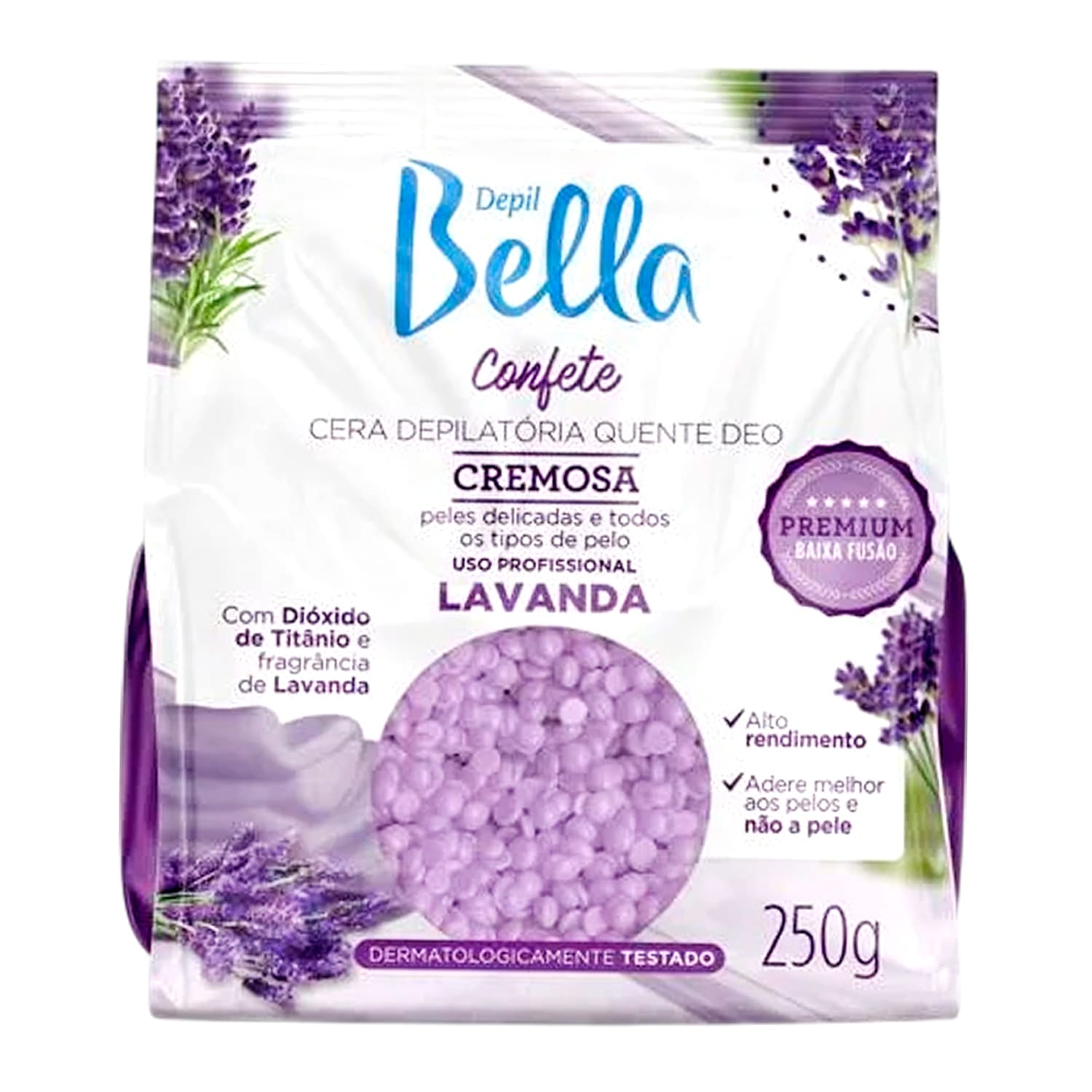 A Cera Depilatória Quente em Confete Depil Bella Lavanda foi desenvolvida com Dióxido de Titânio e fragrância de Lavanda, proporcionando uma depilação suave, eficiente e delicada, ideal para peles sensíveis e todos os tipos de pelo.